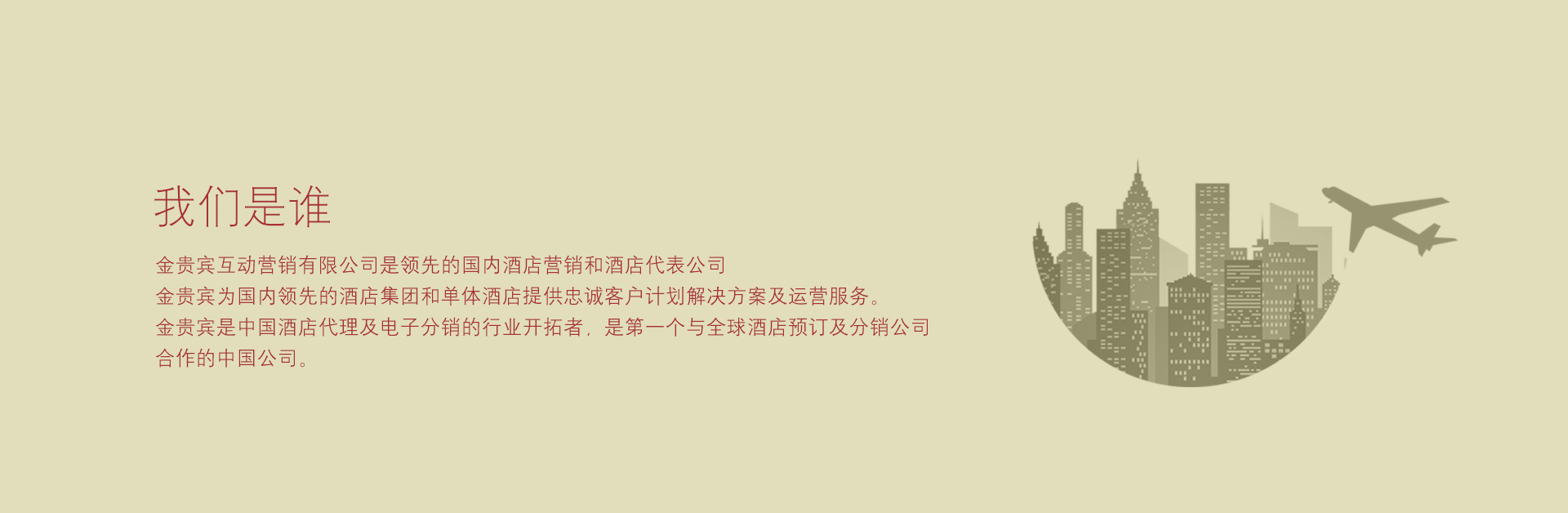 北京金贵宾互动科技有限公司是领先的国内酒店营销和酒店代表公司。通过并购raytime consulting(前艺龙子公司),金贵宾为国内领先的酒店集团和单体酒店提供忠诚客户计划解决方案及运营服务。